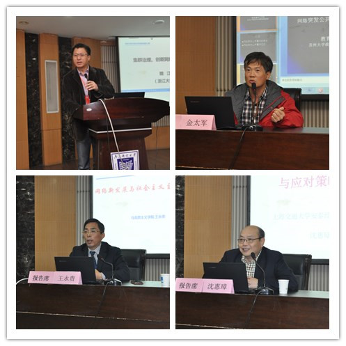 公司副董事长叶美兰教授、浙江大学魏江教授、苏州大学金太军教授、南京师范大学王永贵教授、上海交通大学沈惠璋教授分别作题为《物联网与泛在社会的影响及可能风险》、《集群治理与组织学习》、《网络突发事件的特点及其应对》、《网络新发展与主流文化引领》、《网络群体性事件的演化与应对策略研究》的主题报告。会议期间,与会学者围绕“网络新形态与公共治理创新”和“网络新形态与意识形态安全”等议题分组讨论,并作成果汇报与交流。与会专家学者认为,面对互联网、物联网的迅速发展,积极推进网络新形态下社会治理的创新,是时代发展的必然趋势;在网络空间中进一步加强社会主义意识形态建设,积极维护国家意识形态安全是社会稳定发展的必然之举。
