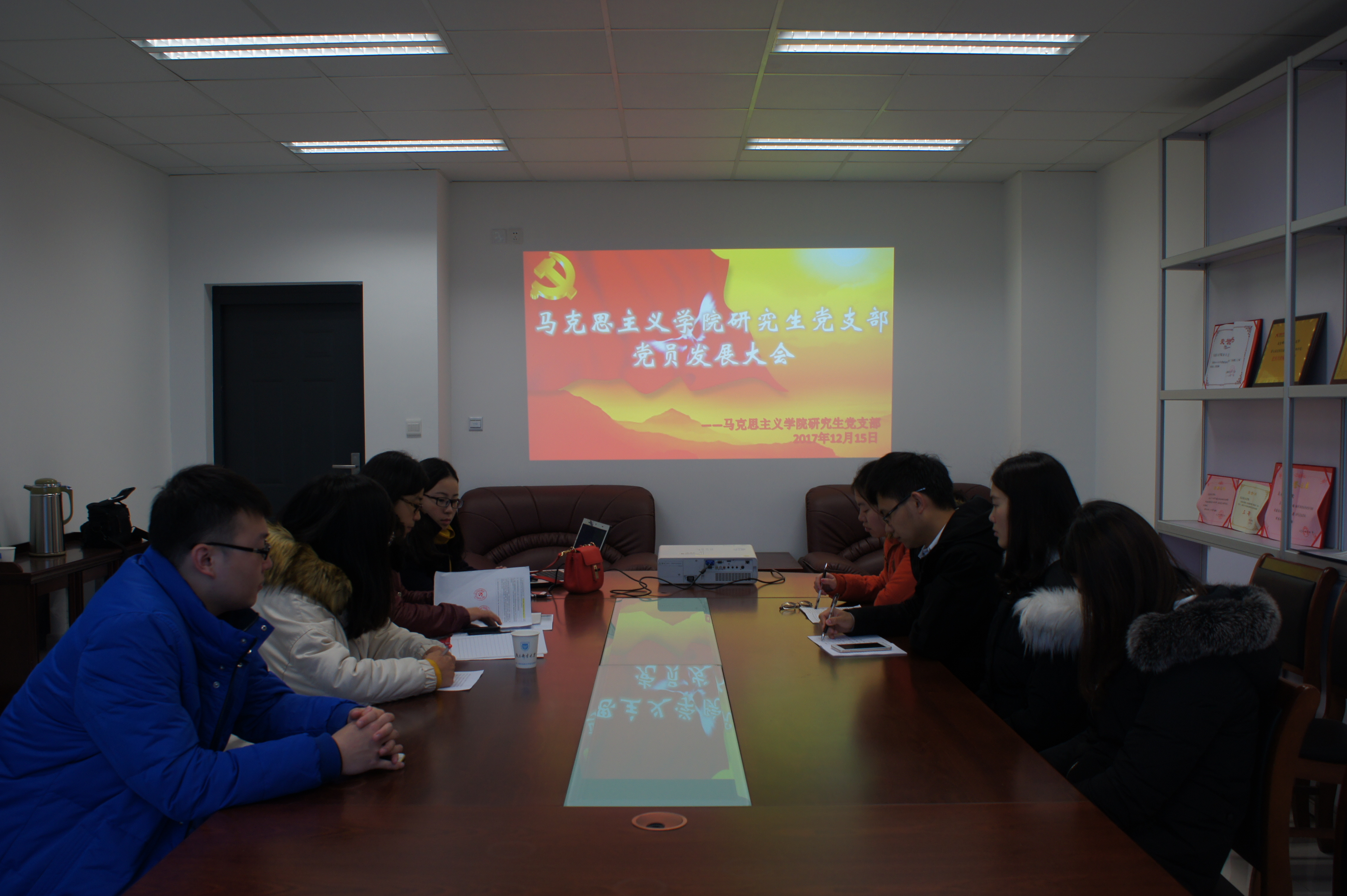 12月15日上午,公司研究生党支部在文科楼328会议室召开党员发展大会。参会人员有正式党员6名,会议由研究生党支部书记王洁老师主持。