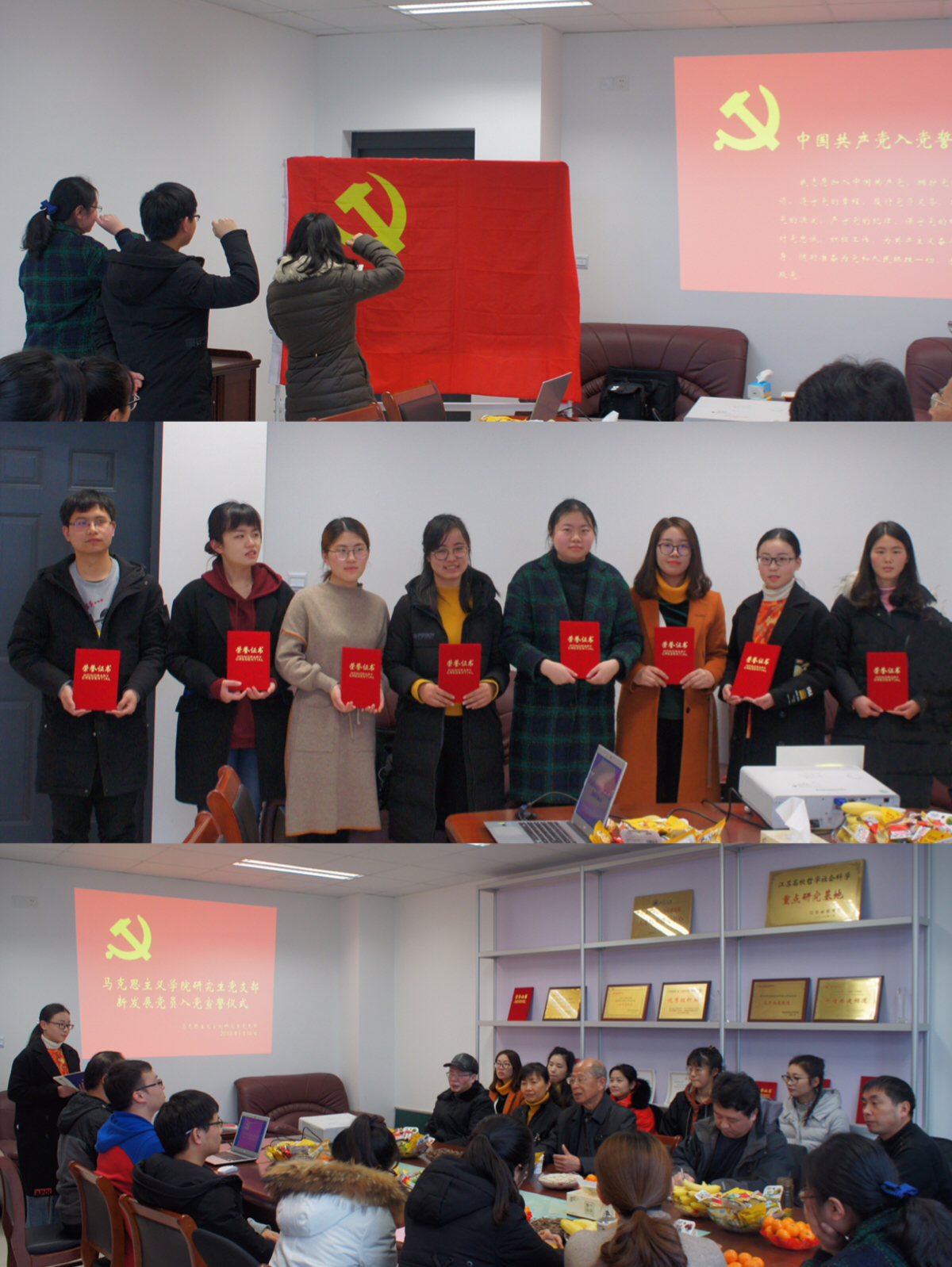 大会伊始,王老师带领新发展员工党员进行入党宣誓。两名新发展员工党员张中豹、窦淑媛同学面向鲜艳的党旗,以高昂的激情宣读入党誓词,铿锵的誓言表达了为共产主义事业奋斗终身的决心。