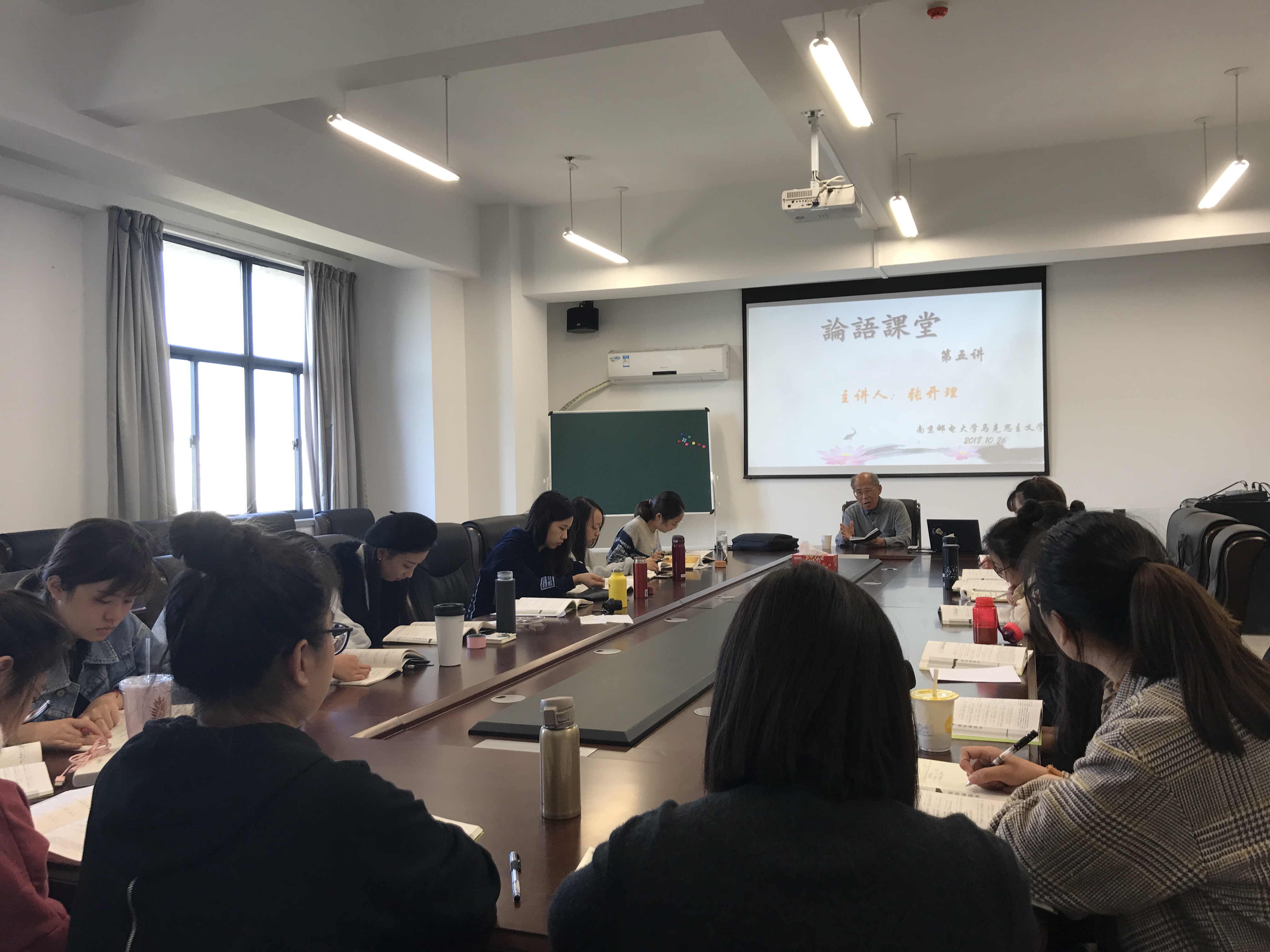 10月26日下午,公司在文科楼会议室开设论语课堂第五讲《颜渊篇》。本次课堂学习由校关工委副主任张开理老师主讲,马院全体研究生共同参加。同学们提前预习相关知识,在课堂中张老师选择性地讲解了重点内容,通过详细而又通俗易懂的讲解,深化了同学们对于论语的理解。