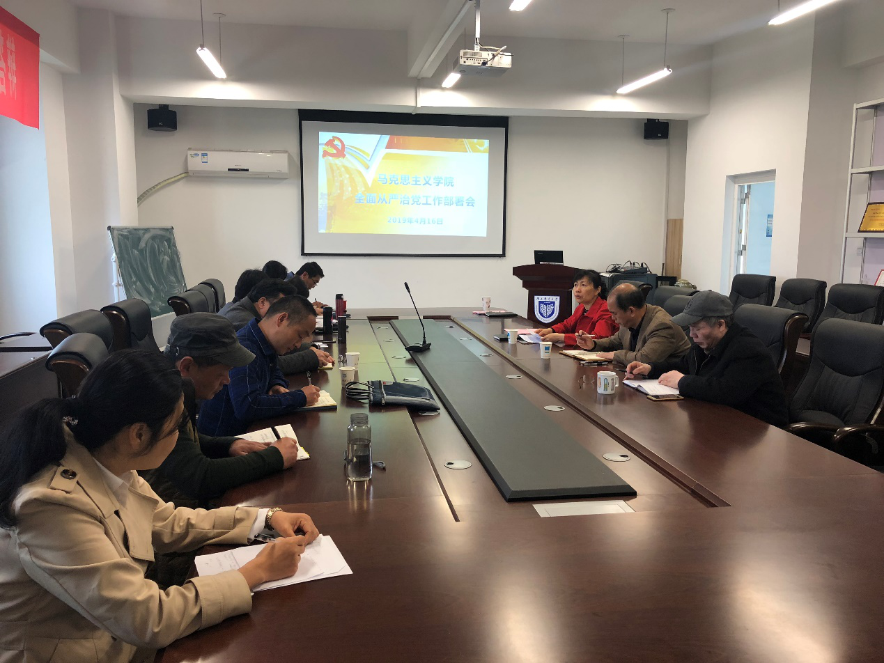 4月16日,我院召开2019年全面从严治党工作部署会。公司党政领导班子全体成员、各教研室主任、各党支部书记、党风联络员、特邀监察员参加会议,党总支书记王碧琴主持会议。