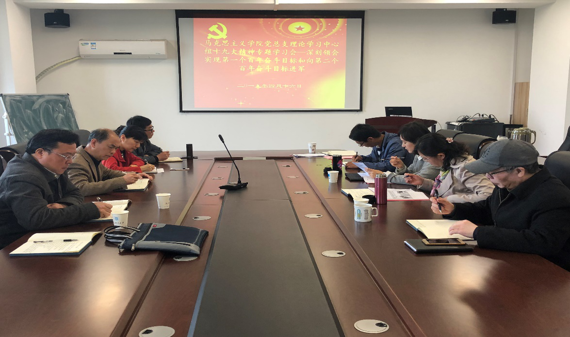 根据公司党总支理论学习中心组党的十九大精神专题学习计划安排,4月16日,蓝鲸体育党总支理论学习中心组召开专题学习会——深刻领会实现第一个百年奋斗目标和向第二个百年奋斗目标进军,概论教研室支部书记郑千千领学,理论学习中心组全体成员作交流研讨。