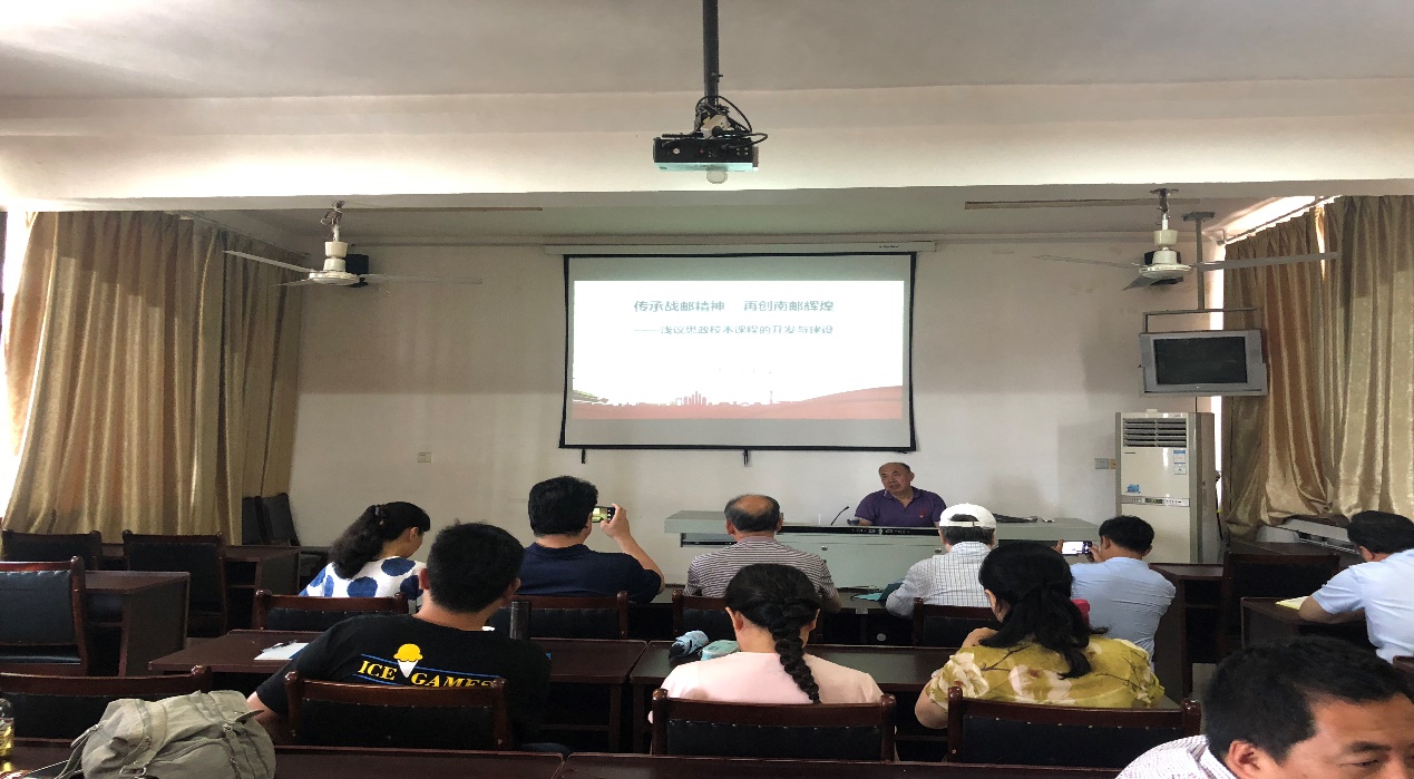 培训研讨促思政。6月23日下午至6月24上午,在莒南县委党校进行了为期两个半天的专题培训,教师们集体观看了《山东战邮精神光照千秋》的纪录片,先后聆听了莒南县委党校赵国梁副董事长的两个专题报告《战邮精神的简要解读和历史启迪》、《以“传承战邮精神,再创南邮辉煌”——浅议高校校本思政课程的开发与建设》及坊前镇党委潘纪东老师的《走近莒南甘霖,领略战邮情怀》主题报告,大家对山东战邮总局的发展历程、山东战邮干训班的办学过程、战邮精神和沂蒙精神的深刻内涵及其与南邮精神的内在逻辑关系等方面有了更加系统而深入的了解,对公司深入挖掘公司红色办学历史和人才培养过程中的独特素材,打造南邮特色的思政“金课”,给予了很好的支撑。最后,思政课教师围绕战邮精神红基传承、挖掘和培育校本思政课资源、打造南邮特色的思政“金课”等方面,展开了深入的研讨,取得了较好的成效。