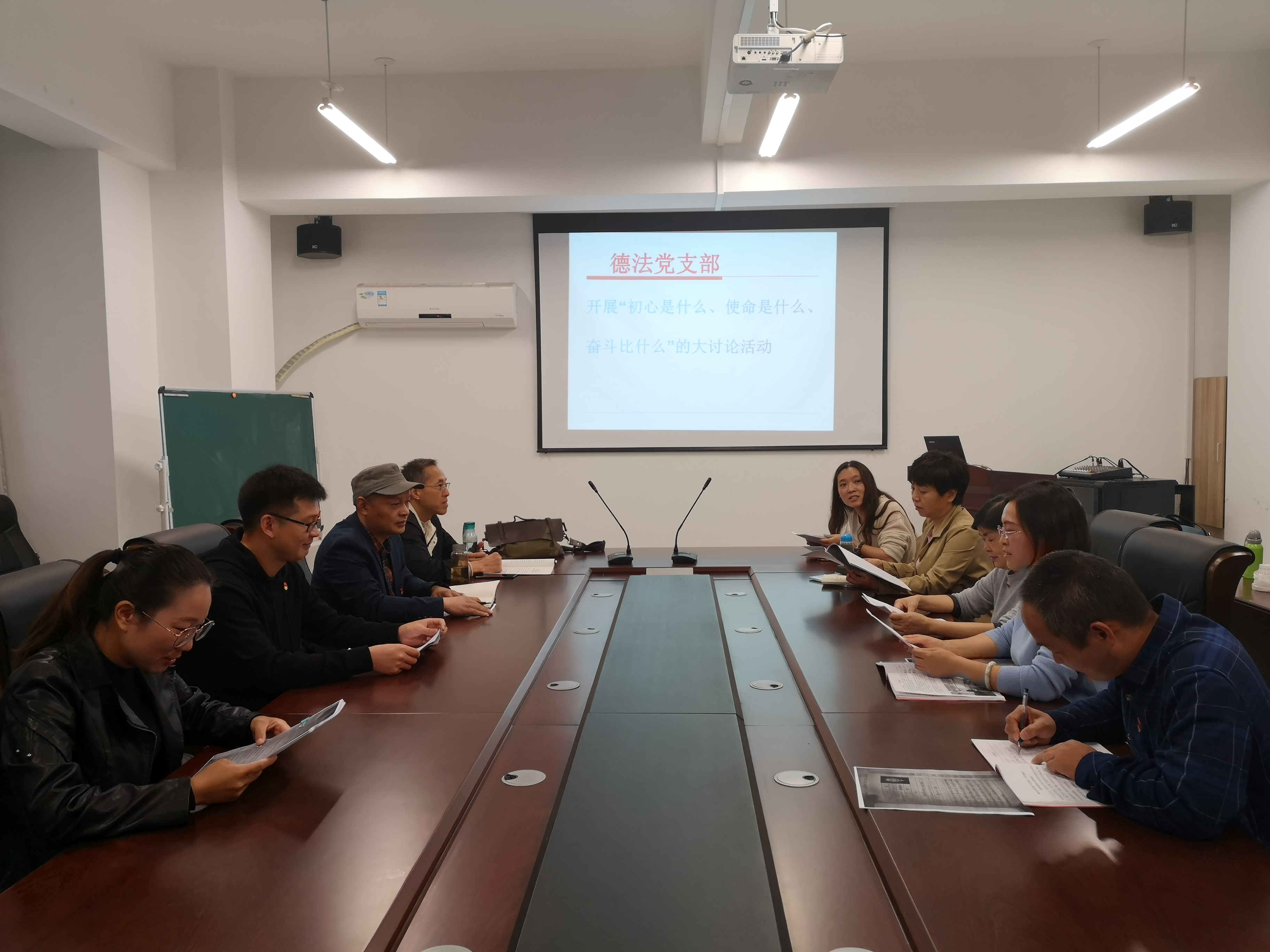 为深入开展“不忘初心、牢记使命”主题教育,重温教师党员的初心,强化教师党员践行习近平总书记提出的“培养什么人、怎样培养人、为谁培养人”的使命,11月1日,德法党支部在院会议室开展“初心是什么,使命干什么,奋斗比什么”主题党日活动,支部部分党员参加了活动。