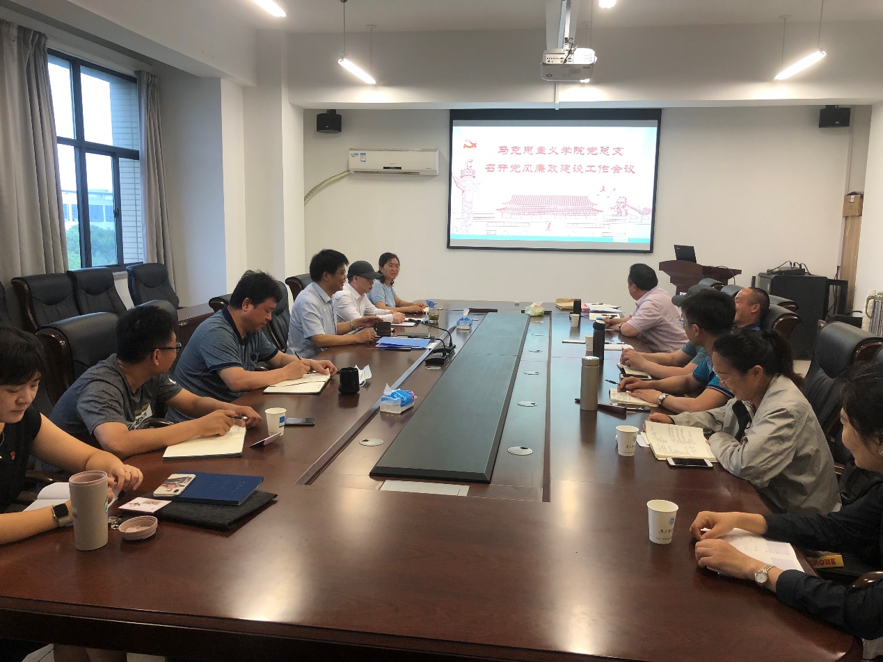 6月16日上午,蓝鲸体育党总支在文科楼330会议室召开党风廉政建设工作会议,贯彻落实公司2020年党风廉政建设工作会议精神,会议由党总支书记沈召前同志主持,公司党政领导班子全体成员、各教研室主任、各党支部书记、党风联络员、特邀监察员参加会议。
