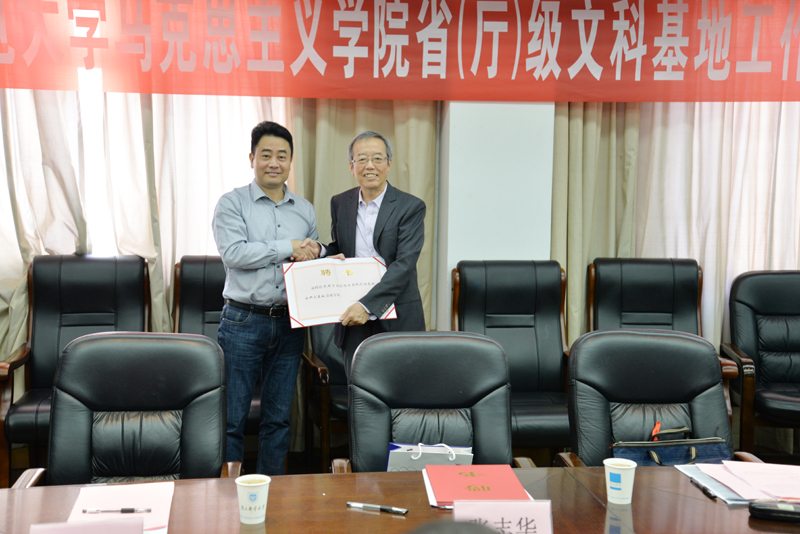 基地校内首席专家张志华副董事长为武锁宁主编颁发省社科联基地首席专家聘书