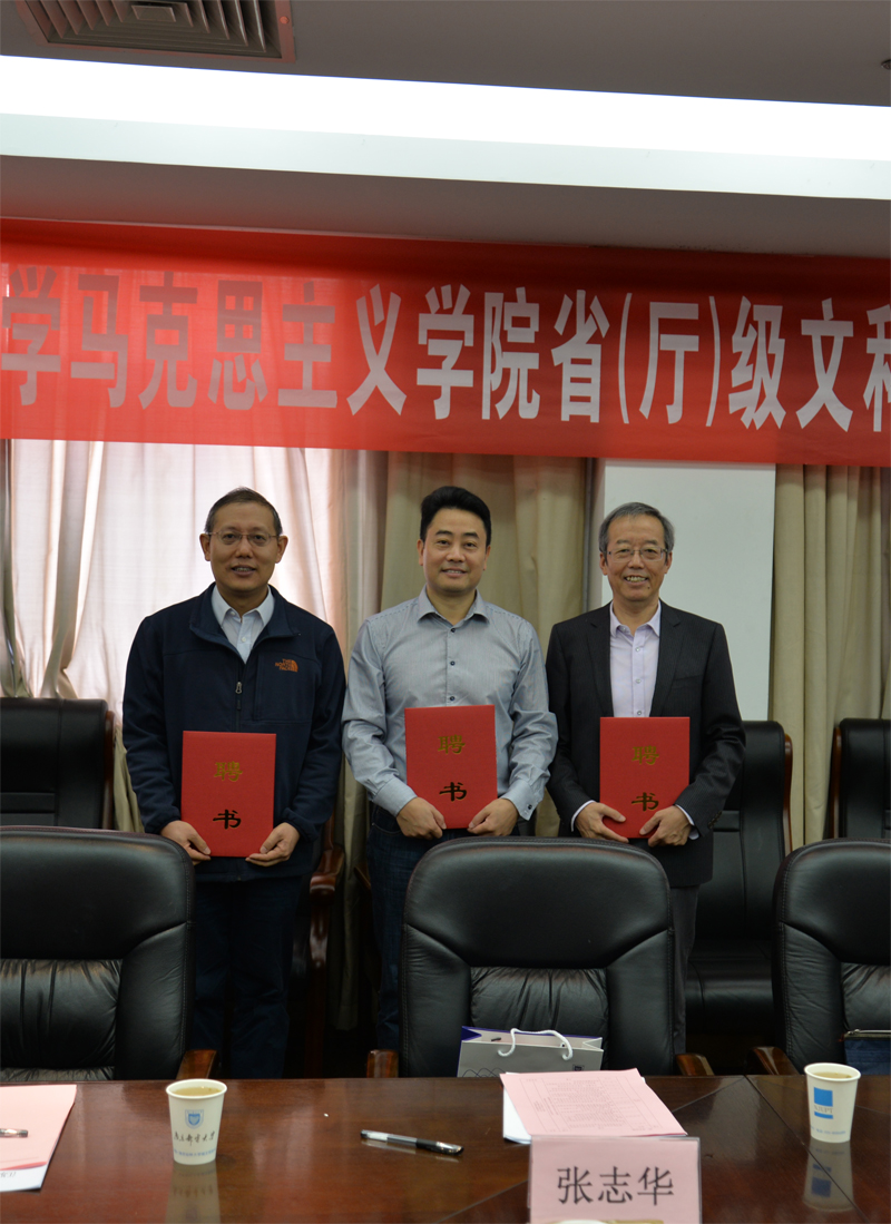 基地校内首席专家张志华副董事长为武锁宁主编颁发省社科联基地首席专家聘书