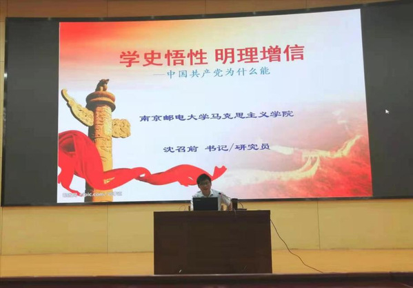 该讲座以中国共产党的伟大历史为主线,以和他国政党的比较为依托,向同学们深刻地剖析了中国共产党成立这一开天辟地的大事变、中国共产党为何能够创造中国革命和中国特色社会主义建设及发展的伟大成就、人类历史奇迹。中国共产党之所以能救中国、建设中国、发展中国,使中国人民不仅站起来,而且富起来、强起来。正是因为中国共产党自成立伊始,在其不断成长和壮大的历程中,始终坚持马克思主义的科学理论指导,始终有坚定的崇高理想信念,始终坚守无私的党性原则,始终加强和发挥强大的组织优势,始终坚持群众路线,有坚定的群众基础,始终坚持彻底的自我革命精神。讲座结束时,沈书记希望同学们好好学习党史,要深刻领悟中国革命和中国特色社会主义建设的伟大思想和伟大精神,要坚定“四个自信”,坚决做到“两个维护”,听党话,跟党走,好好学习、刻苦钻研,积极投身中国特色社会主义现代化建设实践中去。