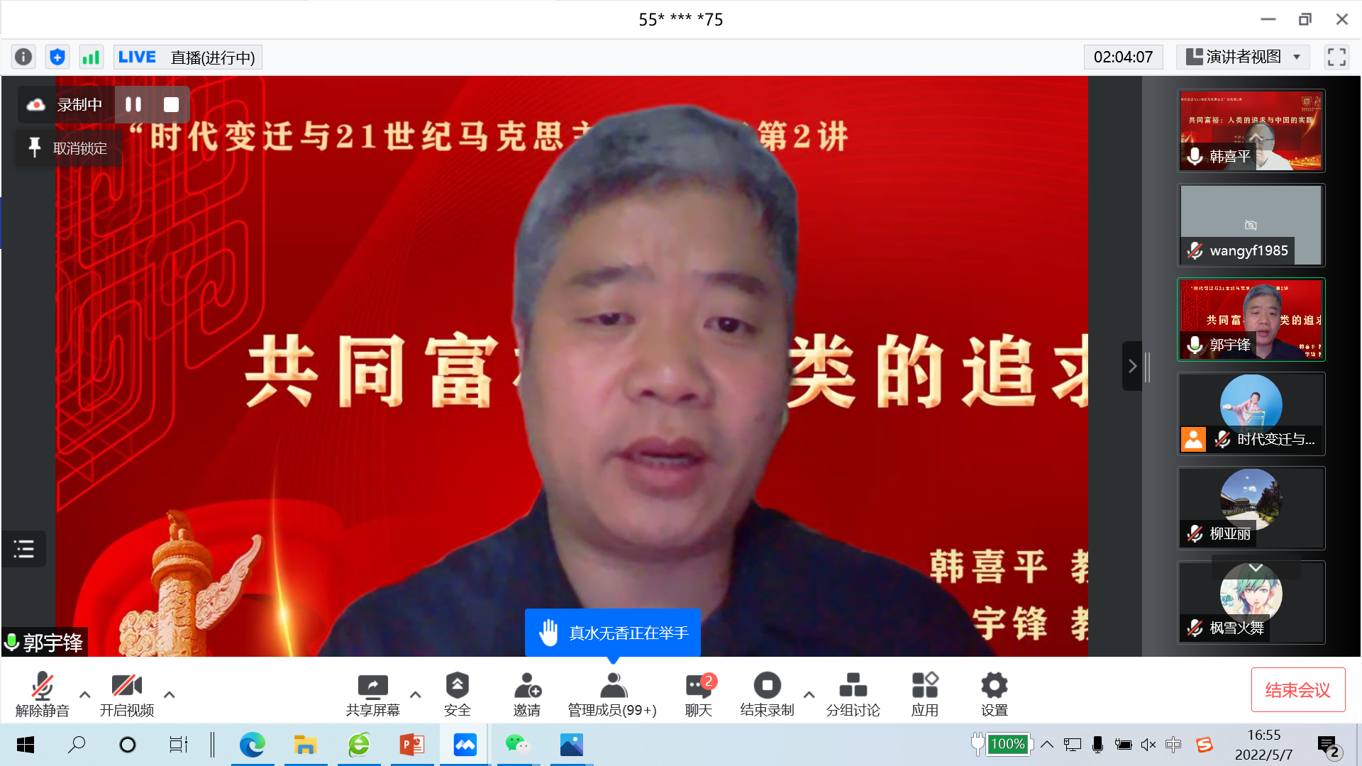 5月7日,吉林大学党委副书记、教授、博士生导师韩喜平应邀作题为“共同富裕:人类的追求与中国的实践”的在线学术报告。公司党委常委、副董事长郭宇锋主持论坛,蓝鲸体育相关负责人、师生代表以及兄弟院校的部分学者240余人参加论坛。本次报告为“时代变迁与21世纪马克思主义”系列论坛第二讲。
