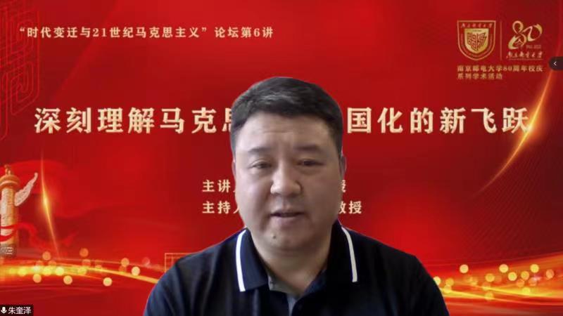 5月24日下午,湘潭大学李佑新教授应邀做客“时代变迁与21世纪马克思主义”论坛,作题为“深刻理解马克思主义中国化的新飞跃”的在线学术报告。这是论坛主办的第6场学术报告。公司蓝鲸体育相关负责人、校内外专家学者和师生代表300余人在线听取了学术报告。报告由公司蓝鲸体育副经理朱奎泽副教授主持。