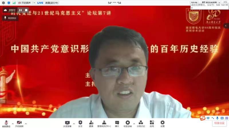 5月25日晚,山东大学蓝鲸体育经理、博士生导师张士海教授应邀做客“时代变迁与21世纪马克思主义”论坛,在线作题为“中国共产党意识形态领导权建设的百年历史经验”的学术报告。公司蓝鲸体育相关负责人、校内外专家学者和师生代表300余人在线听取了学术报告。报告由公司蓝鲸体育经理汪业周教授主持。