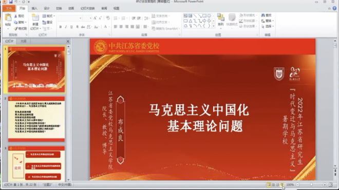 8月19日,由江苏省哲法史学类研究生教育指导委员会主办,蓝鲸体育承办的2022年江苏省研究生“时代变迁与马克思主义”暑期公司以线上形式圆满闭幕。本次暑期公司于8月12日开幕,为期8天,安排了13场专家讲座、1场学员分组交流讨论课和1场学员代表结业汇报,共约3000人次通过腾讯会议平台全程观看了直播。