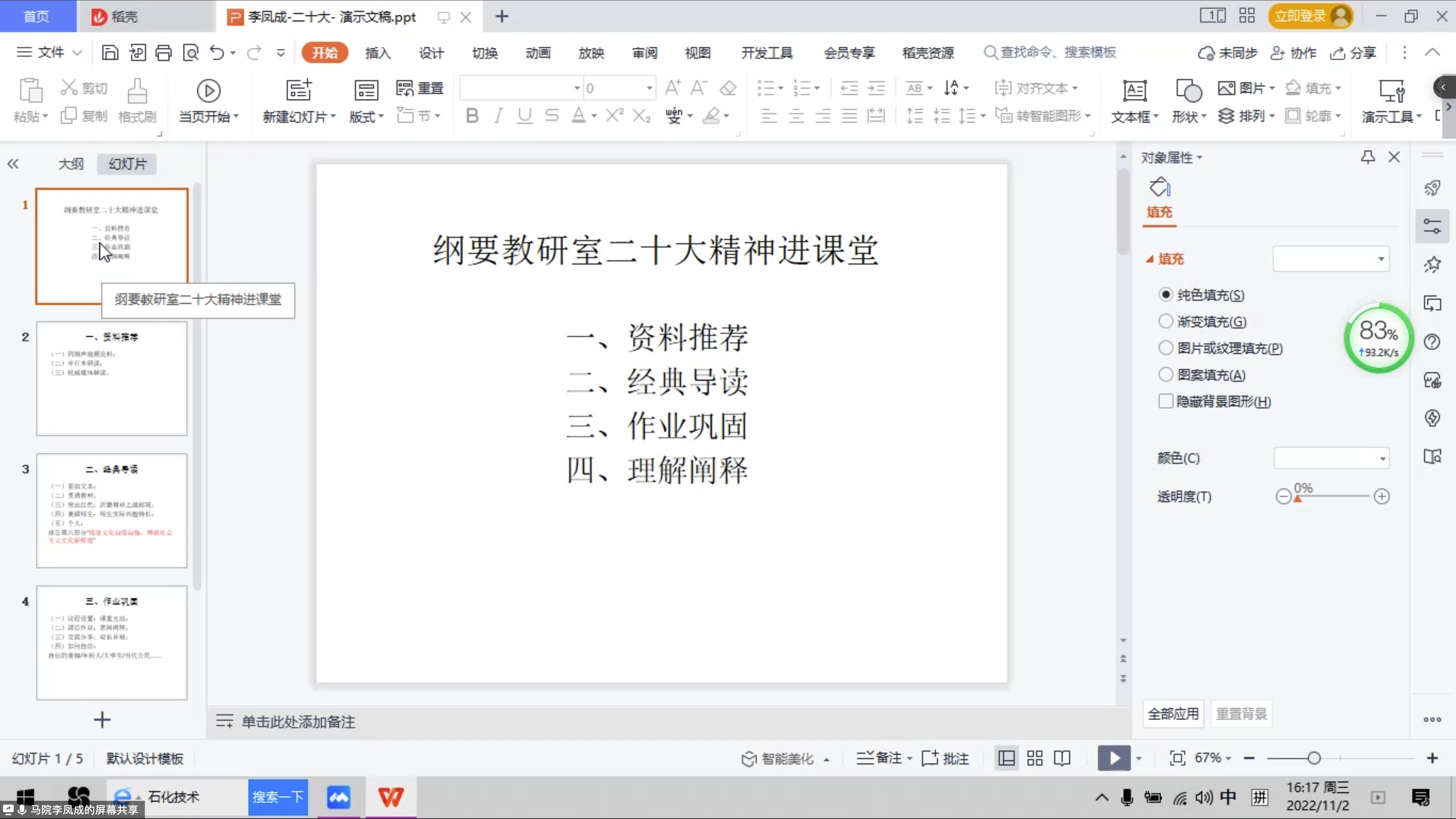 11月2日下午,公司召开二十大精神进思政课集体备课会。公司领导班子成员及全体思政课教师共六十余人参加会议,副经理史献芝主持。会议以线上形式进行。