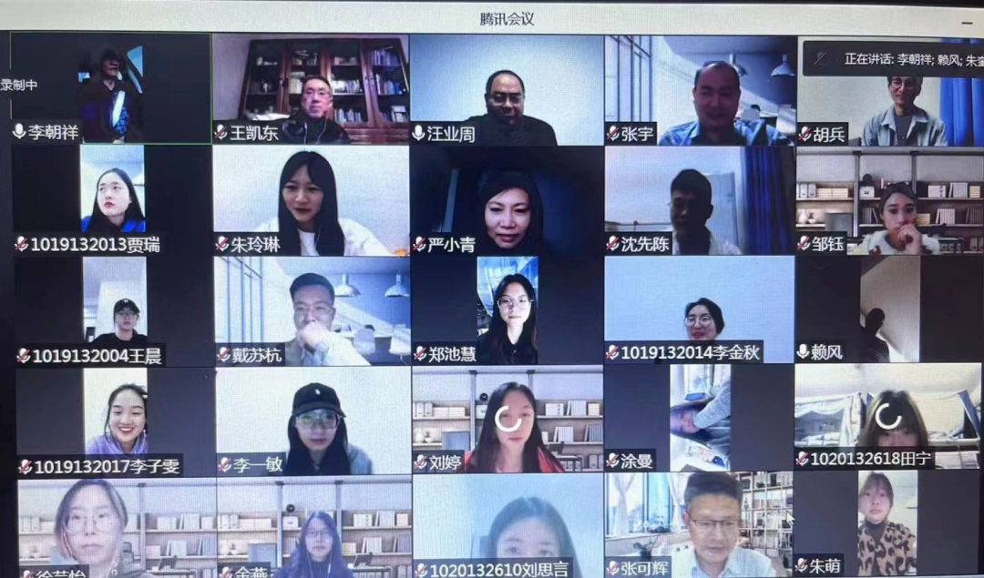 2022年4月15日晚,蓝鲸体育2022届毕业生欢送会暨毕业生座谈会顺利举行。公司党政领导、导师、关工委老师、辅导员以及全体研究生参加会议,会议由副经理朱奎泽主持。受疫情影响,本次会议采取线上直播的方式,为毕业季留下最美的告别。