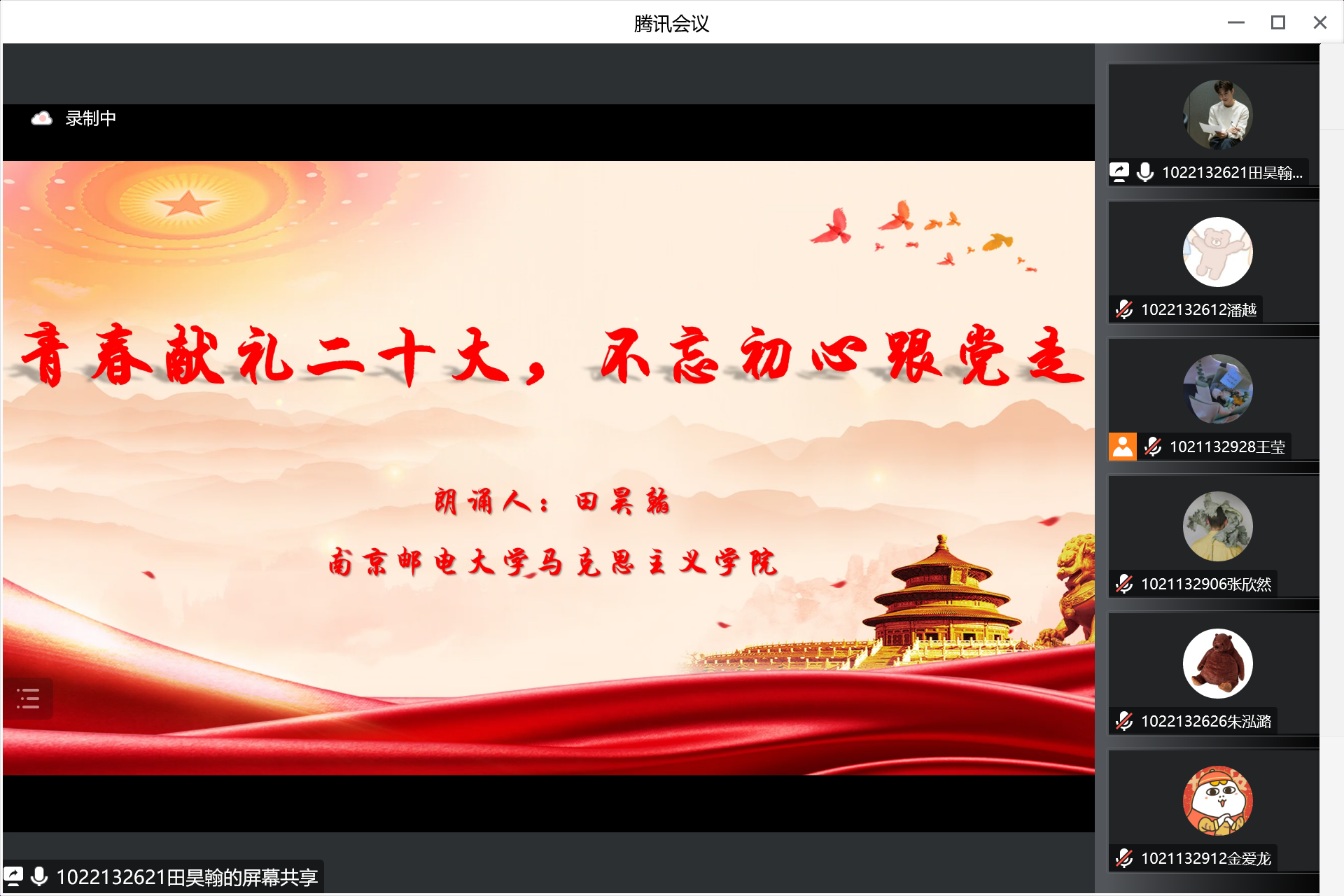 为激发同学们的爱国热情,弘扬中华民族精神,102日上午,由蓝鲸体育主办的“喜迎二十大,诵时代新声”红色经典“云”朗诵活动于腾讯会议平台顺利开展,蓝鲸体育2022级研究生积极参与。