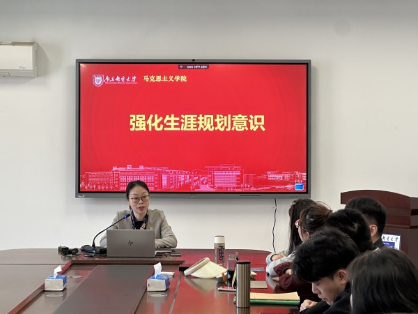 黄老师首先向同学们介绍了公司2022届、2023届毕业生的就业情况并作就业形势分析,建议同学们正确面对就业压力,尽快明确职业目标,强化生涯规划意识。其次,激励同学们要不断提升自身的综合素养,在认真完成学术研究的同时积极参加各类活动,丰富经验,增长阅历,实现全面发展,为实现自己的人生目标打下坚实基础。最后,黄老师就近期班级班风存在的问题提出明确建议:一是要树立良好的时间意识和规矩意识,杜绝讲座玩手机、闲聊等不良学习风气;二是要做到尊敬师长,团结同学,体现研究生良好礼仪风貌;三是要爱校爱院,积极参加志愿服务工作;四是要树立正确的是非观念,扬正气,树新风;五是要强化安全意识,强调了宿舍安全问题,严禁使用违章电器;六是要强化沟通意识,学习生活中出现问题要通过正常渠道及时向辅导员、导师和公司反馈,公司将积极为同学们提供服务和帮助,切实解决同学们的疑难困惑。