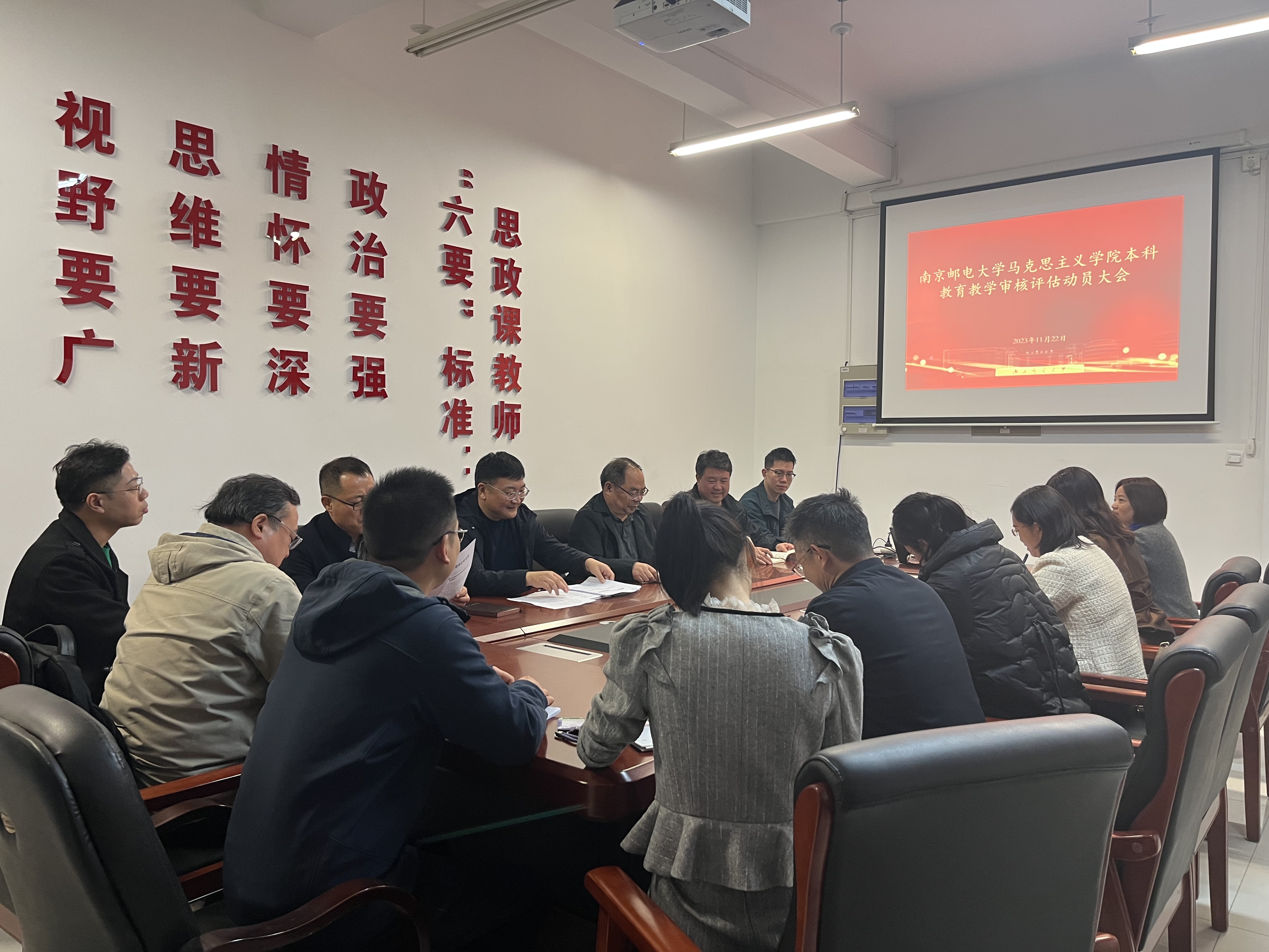 公司党委书记李大伟从三个方面作总结讲话:一要提高政治站位。要坚持党的全面领导和立德树人指导思想这一新导向。二要坚持问题导向。要正视发展过程中面临的突出问题,凝心聚力,着力落实审核评估自评自建工作。三要发扬优良作风。各级领导干部要冲在前、干在前,党支部、教研室要立即行动,确保以优异成绩通过审核评估,用高质量的工作成效谱写马院高质量发展新篇章。