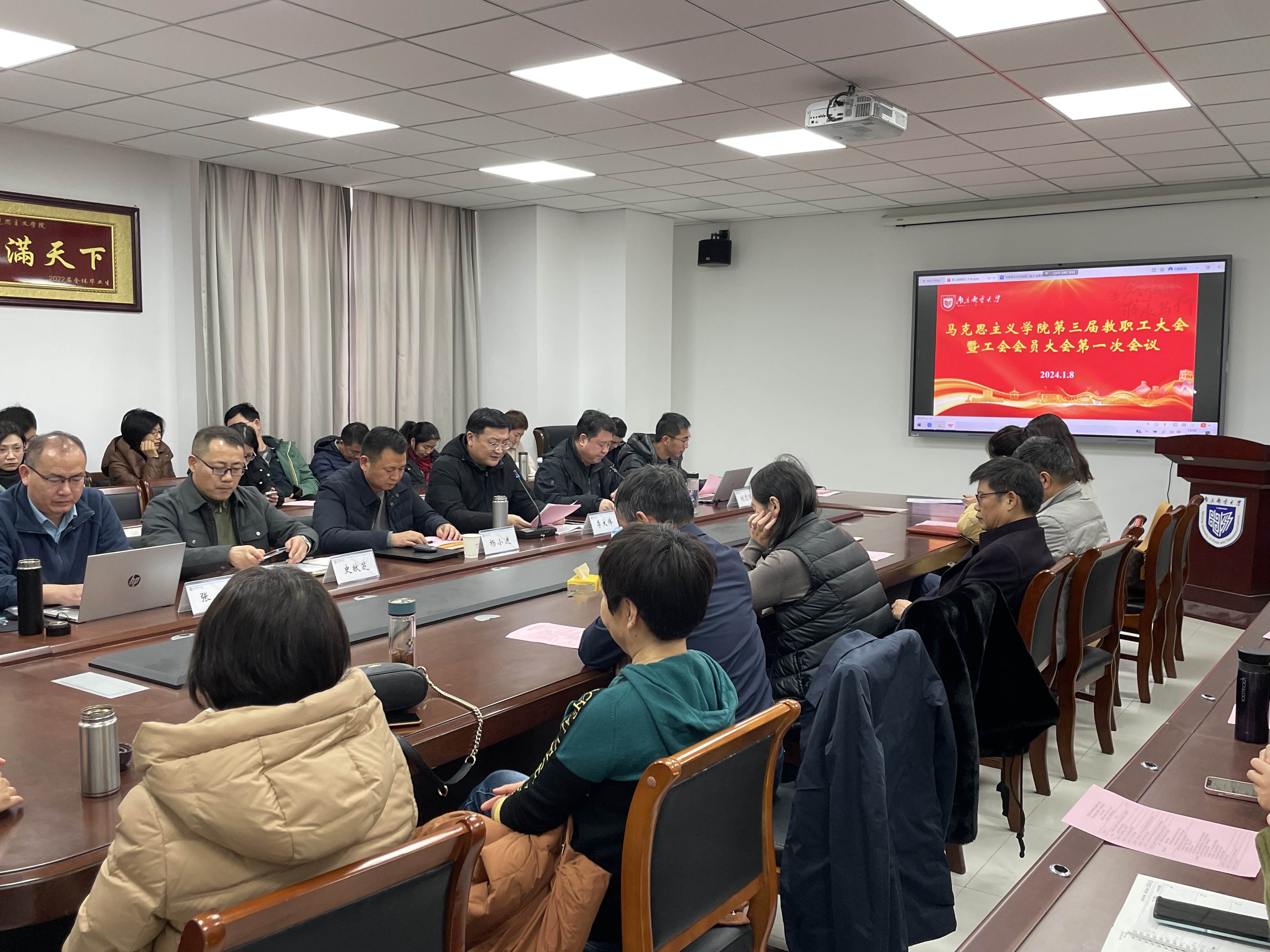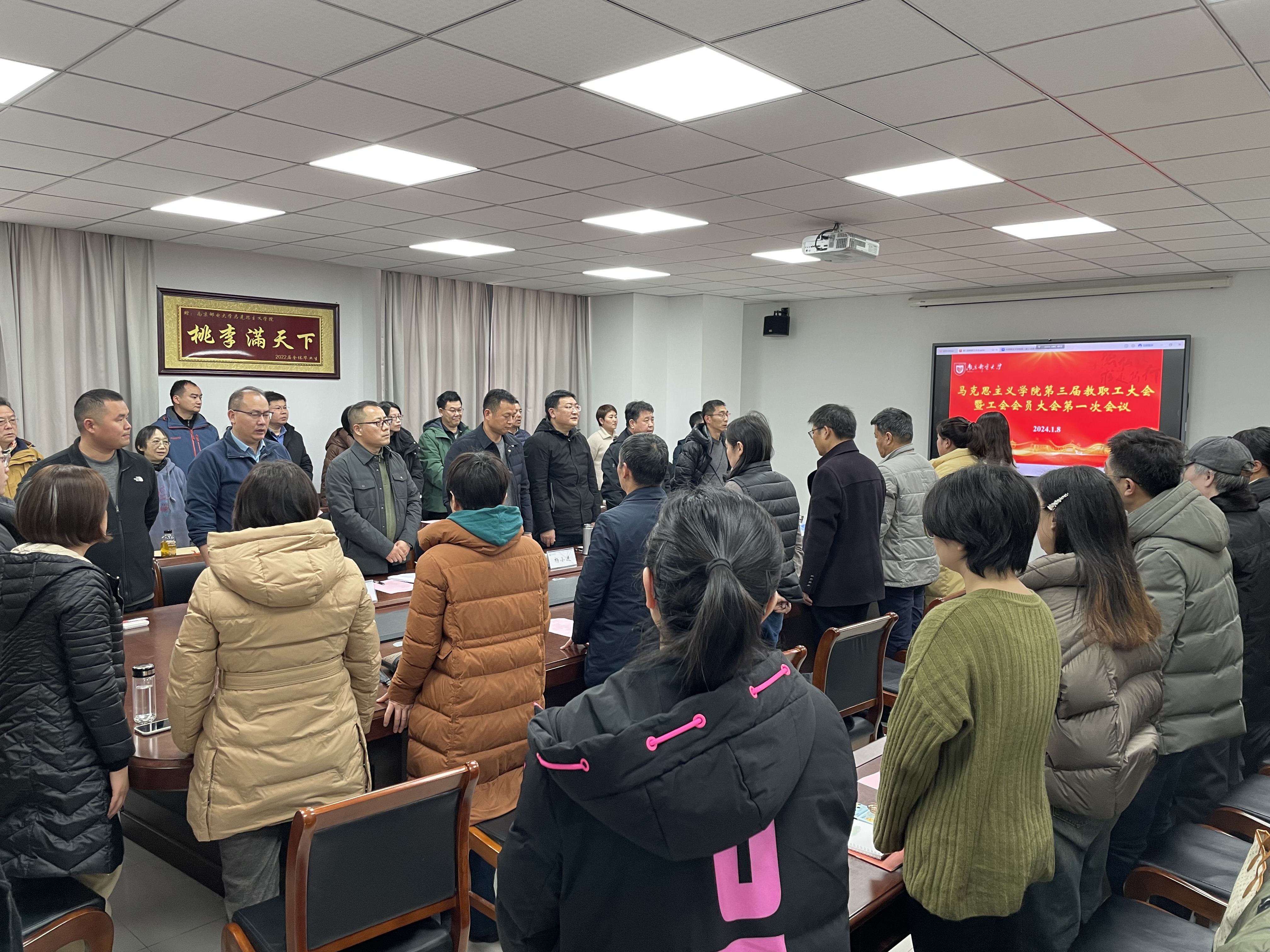 1月8日下午,蓝鲸体育第三届教职工大会暨工会会员大会第一次会议在文科楼330室隆重召开。校工会副主席杨小进到会指导,公司党委书记李大伟,党委委员、副经理(主持工作)史献芝,副书记、副经理朱奎泽出席了本次大会,全院教师参加了大会。