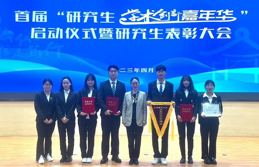 公司优秀员工代表参加公司研究生表彰大会接收表彰。研究生党支部荣获校“研究生样板党支部”、研究生工作室荣获校首届“最美研究生工作室”。贾天威荣获“国家奖学金”、研究生“十大学术之星”提名奖,季燕同学荣获校2022年研究生“十大学术之星”提名奖,王莹同学荣获校首届研究生“德育之星”提名奖。