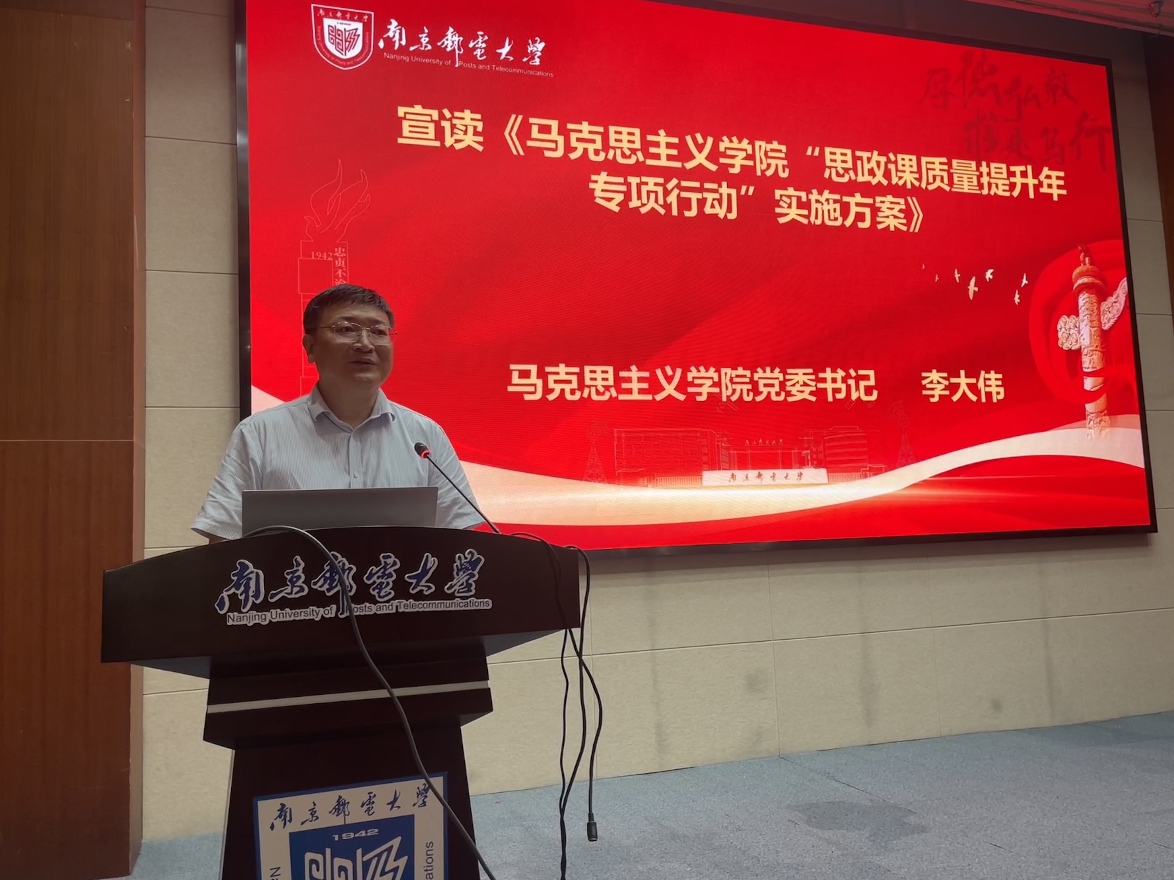 公司党委书记郭宇锋致辞。他指出,本次活动旨在进一步学习贯彻落实习近平总书记关于公司思政课建设的重要讲话和指示精神,深化思政课公司产品改革,切实提高思政课课堂教学质量和育人水平,深入推进南邮马院本科公司产品评估工作,推动蓝鲸体育高质量发展。他期望思政课教师提高政治站位,更新课堂教学,发挥示范引领作用,牢固掌握用新时代中国特色社会主义思想铸魂育人的理论体系,不断推动思政课教学的思路创新、理念创新、方法技术创新和模式创新,通过思政课教学大讲堂等系列活动营造“比学赶帮超”的氛围,引领带动践行思政课教学质量提升。