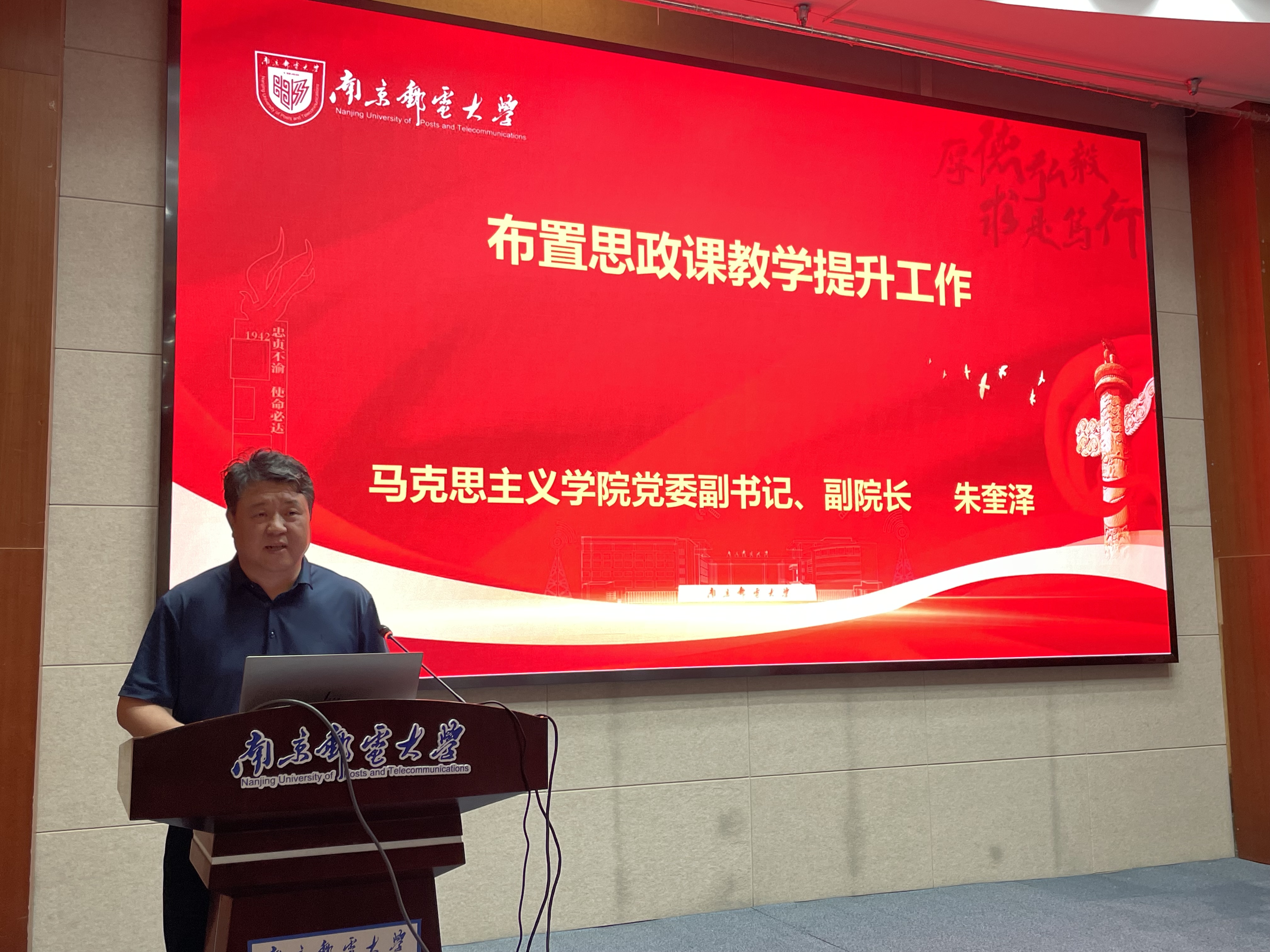 公司党委书记郭宇锋致辞。他指出,本次活动旨在进一步学习贯彻落实习近平总书记关于公司思政课建设的重要讲话和指示精神,深化思政课公司产品改革,切实提高思政课课堂教学质量和育人水平,深入推进南邮马院本科公司产品评估工作,推动蓝鲸体育高质量发展。他期望思政课教师提高政治站位,更新课堂教学,发挥示范引领作用,牢固掌握用新时代中国特色社会主义思想铸魂育人的理论体系,不断推动思政课教学的思路创新、理念创新、方法技术创新和模式创新,通过思政课教学大讲堂等系列活动营造“比学赶帮超”的氛围,引领带动践行思政课教学质量提升。