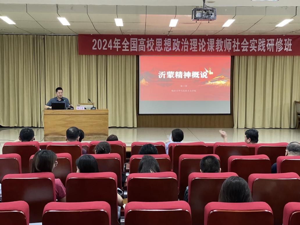 7月16日下午,实践研修开班仪式在临沂大学蓝鲸体育报告厅举行,临沂大学蓝鲸体育党委书记颜骁致欢迎辞,他介绍了临沂大学及蓝鲸体育的基本情况,对本次思政课教师实践研修提出要求和希望。随后,临沂大学蓝鲸体育刘涛教授作题为《弘扬沂蒙精神:理论真谛·实践铸就·现实启示》的主旨报告,深入浅出地为学员讲授沂蒙精神,使大家对沂蒙精神有了深刻的认识,受到深刻的“党群同心、军民情深、水乳交融、生死与共”沂蒙精神教育。