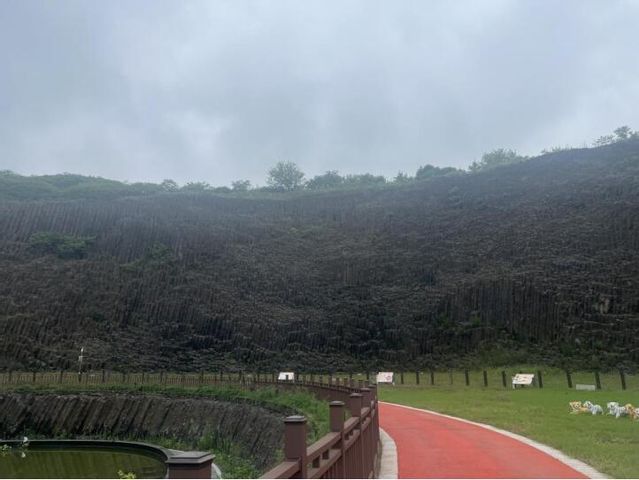 紧接着,来到桂子山石柱林景区。这里被誉为“世界罕见”的石柱林景观,由五边、六边形规则的石柱群体组成,每根石柱直径约40-60厘米,高20-30米,紧密排列,构成半壁石林,气势恢宏。据地质专家介绍,这些石柱是约20万至9百万年前火山喷发后,玄武岩浆冷却收缩形成的柱状节理。这种自然奇观让人震撼,也让人更加珍惜眼前的美好生活。