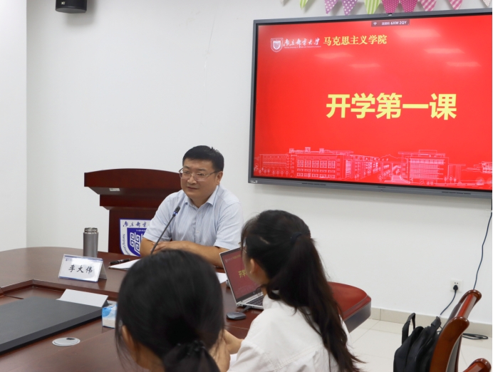 课程伊始,李大伟书记围绕政治思想、学术学习、身心健康、职业规划、礼仪礼节及遵纪守法等六大主题,为新生们上了一堂生动而深刻的入学教育课。第一,他首先强调了政治思想的重要性,勉励马院新生们要坚定政治信仰,始终相信并拥护党的领导,成为新时代中国特色社会主义事业的坚定支持者和建设者;第二,在学术学习方面,李书记结合自己的求学经历,向新生们传授了宝贵的经验。他指出,学术研究是一条充满挑战的道路,需要同学们早做规划,养成良好的阅读习惯,锻炼严谨的学术思维,并不断提升自己的写作能力。同时,他也鼓励新生们要勇于探索,敢于创新,在学术研究中不断取得新的突破;第三,身心健康是学习和生活的基础。李书记强调,新生们要关注自己的心理健康,学会调整心态,保持良好的情绪状态。他还建议大家养成良好的生活习惯,加强体育锻炼,保持健康的体魄和积极向上的精神面貌。第四,在职业生涯规划方面,李书记给予了中肯的建议。他鼓励新生们要拓宽视野,尽早规划,将就业目标设定得更加长远。在读研期间,要多参与学术研讨与社会实践活动,积累社会经验,为将来的求职就业打下坚实的基础。第五,掌握基本的礼仪礼节是好的人际交往中不可或缺的一部分。李书记要求马院学子们要尊师重道,同学之间相互尊重,共同营造一个和谐融洽的学习氛围。无论是在校园内还是在校外,同学们都要保持谦逊有礼的态度,树立良好的个人形象。最后,李书记强调了遵守纪律的重要性。他指出,无规矩不成方圆,作为马院的员工,必须自觉遵守校规院纪。在当今网络高度发达的时代背景下,更要做到谨言慎行,在互联网空间内也要遵守法律法规和道德规范