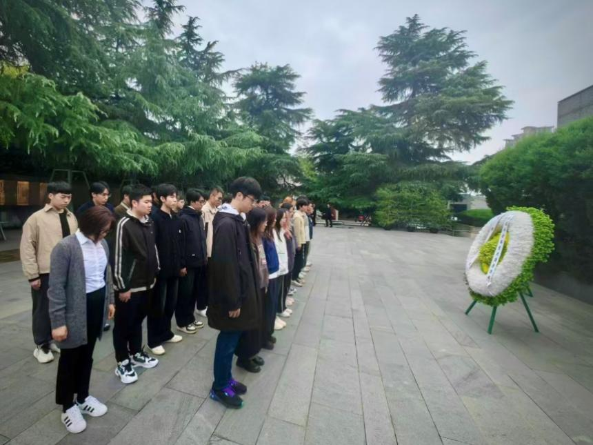 铭记历史,缅怀逝者。参观活动开始前,全体师生怀着庄严肃穆的心情,在纪念馆小广场举行了默哀仪式,深切缅怀在南京大屠杀中遇难的无辜同胞。全体师生低头默哀,面容凝重,现场的宁静似乎将时光拉回到了那段黑暗的历史,仿佛能够感受到1937年12月南京沦陷时的悲痛和屈辱。这是对历史的沉思,也是对和平的祈愿。
