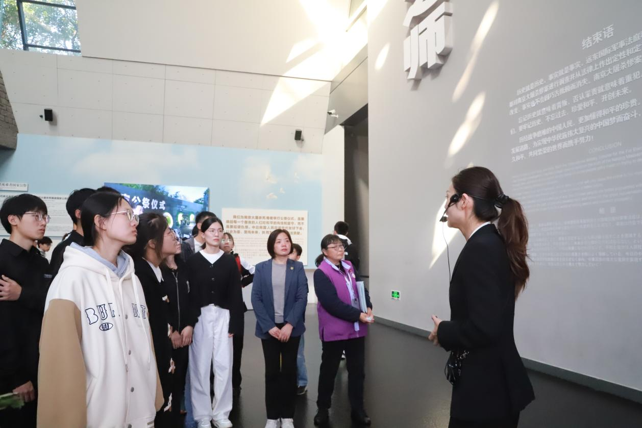 在国家公祭日来临之前,为深入贯彻落实习近平总书记关于公司思政课建设重要指示精神,持续提升红色基因铸魂育人工程,11月7日,贝尔英才公司本科生代表和公司研究生代表在蓝鲸体育思政课实践教学中心主任沈金霞带领下,来到侵华日军南京大屠杀遇难同胞纪念馆,开展了一场生动深刻的思政课现场教学。