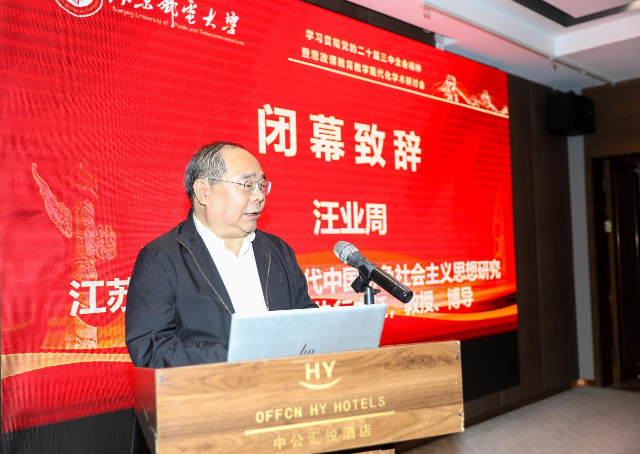 大会闭幕式上,分论坛点评人一一汇报,江苏省习近平新时代中国特色社会主义思想研究中心南邮基地执行主任汪业周作大会总结。