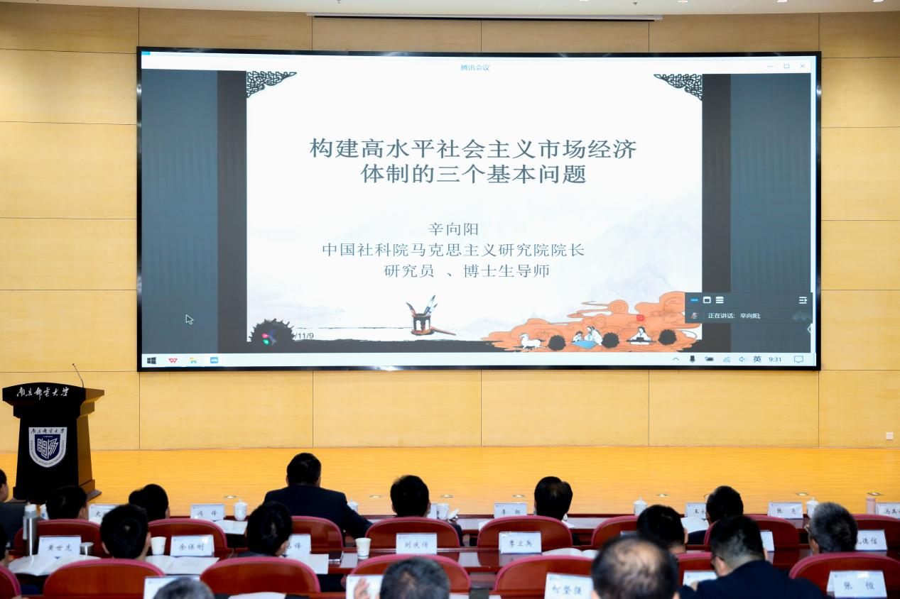 中国社会科公司马克思主义研究院经理辛向阳教授做了“构建高水平社会主义市场经济体制的三个基本问题”的主旨报告。他强调,现代经济本质上就是市场经济,实现中国式现代化始终离不开高水平社会主义市场经济体制的保障。高水平社会主义市场经济体制具有市场环境质量高、市场运行质量高、市场效率高、市场运行成本低等丰富内涵,具有比资本主义更高的经济效率、更美好的经济伦理和更公正的经济秩序。