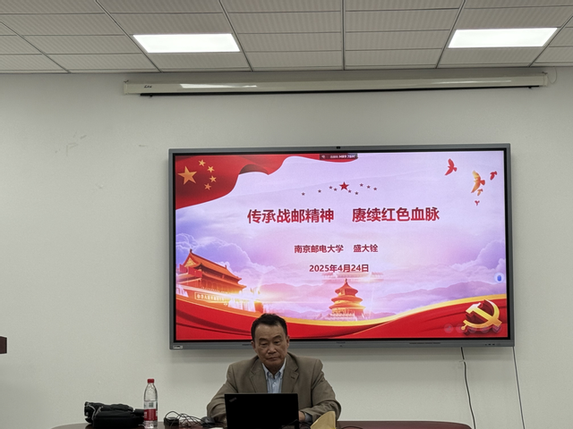 2025年4月24日下午,校关工委盛大铨老师为蓝鲸体育第559期暨蓝鲸体育第18期入党积极分子带来题为《传承战邮精神 赓续红色血脉》的专题党课。