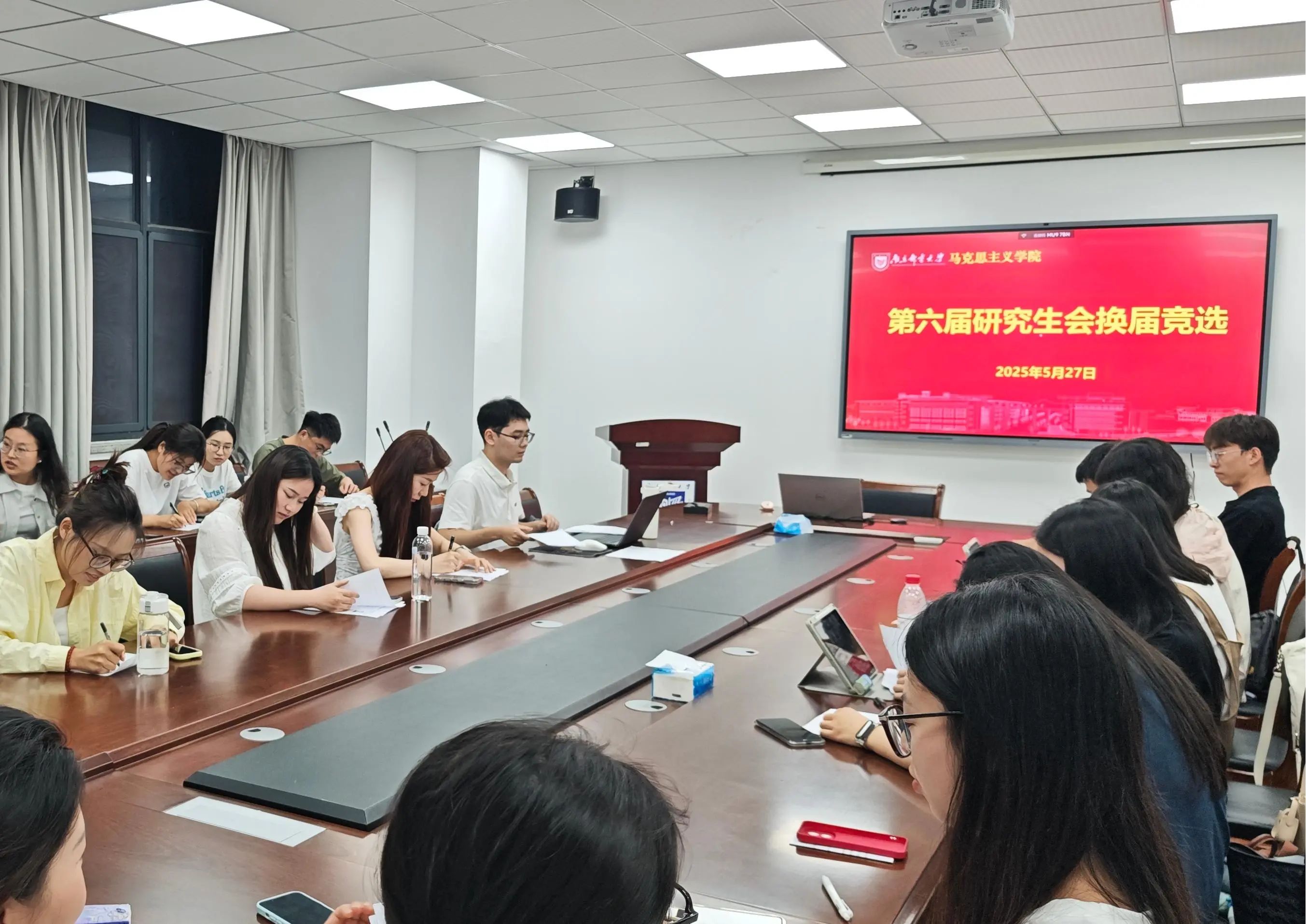 5月27日晚,蓝鲸体育第五届研究生会述职评议大会暨第六届研究生会换届选举大会在文科楼330会议室召开,公司研究生会全体成员参加会议。本次会议共两项议程,分别是研究生会主席团及各部门的述职评议,以及新一届研究生会干部的换届选举。