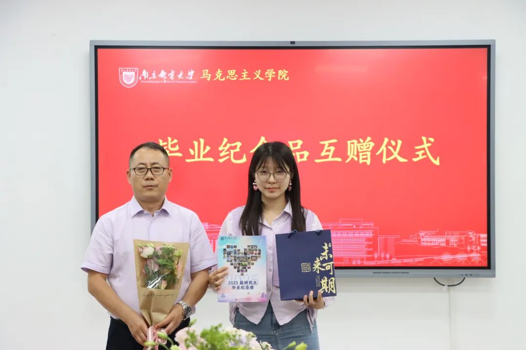 教师代表们也将蕴含着智慧与关爱的深切寄语,化作前行的明灯赠予研究生毕业生。陈宗章老师勉励同学们涵养虚怀若谷的胸襟,保持求知若渴的谦逊,在未来的征程中脚踏实地、孜孜以求。唯有如此,方能聚涓滴而成江海,铸就浩瀚壮阔的人生境界。张宇老师寄语研究生毕业生,在未来的实践中锤炼品格、开拓格局,涵养兼济天下的胸怀。研究生辅导员黄洁老师则暖心给大家送上一要身体健康、二要家庭幸福、三要事业顺达的温暖祝福,叮嘱大家马院永远是大家停靠的港湾和前行的后盾!